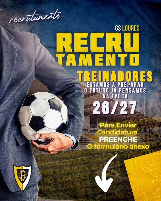 O GS Loures está a preparar o futuro e procura recrutar os melhores profissionais para integrar a sua ambiciosa estrutura de Futebol de Formação, tanto Masculino como Feminino, para a época 2026/2027! "Se é apaixonado por formação, desenvolvimento de talentos e quer fazer parte de um projeto em crescimento, o seu lugar é connosco!", refere o clube presidido por Fernando Paixão nos canais oficiais.